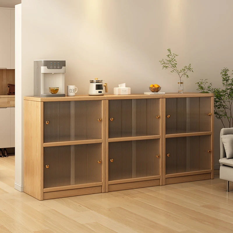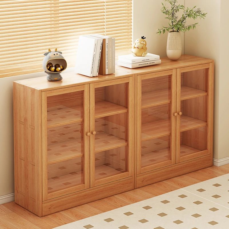 Japanese-Style Solid Wood Bookcase with Doors - Low Storage Cabinet for Living Room, Ideal for Window Sills, Perfect for Home Organization and Stylish Display.