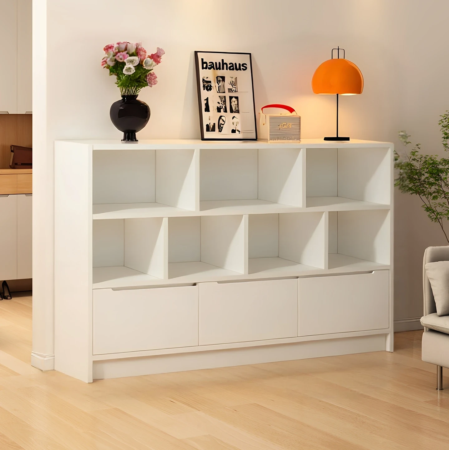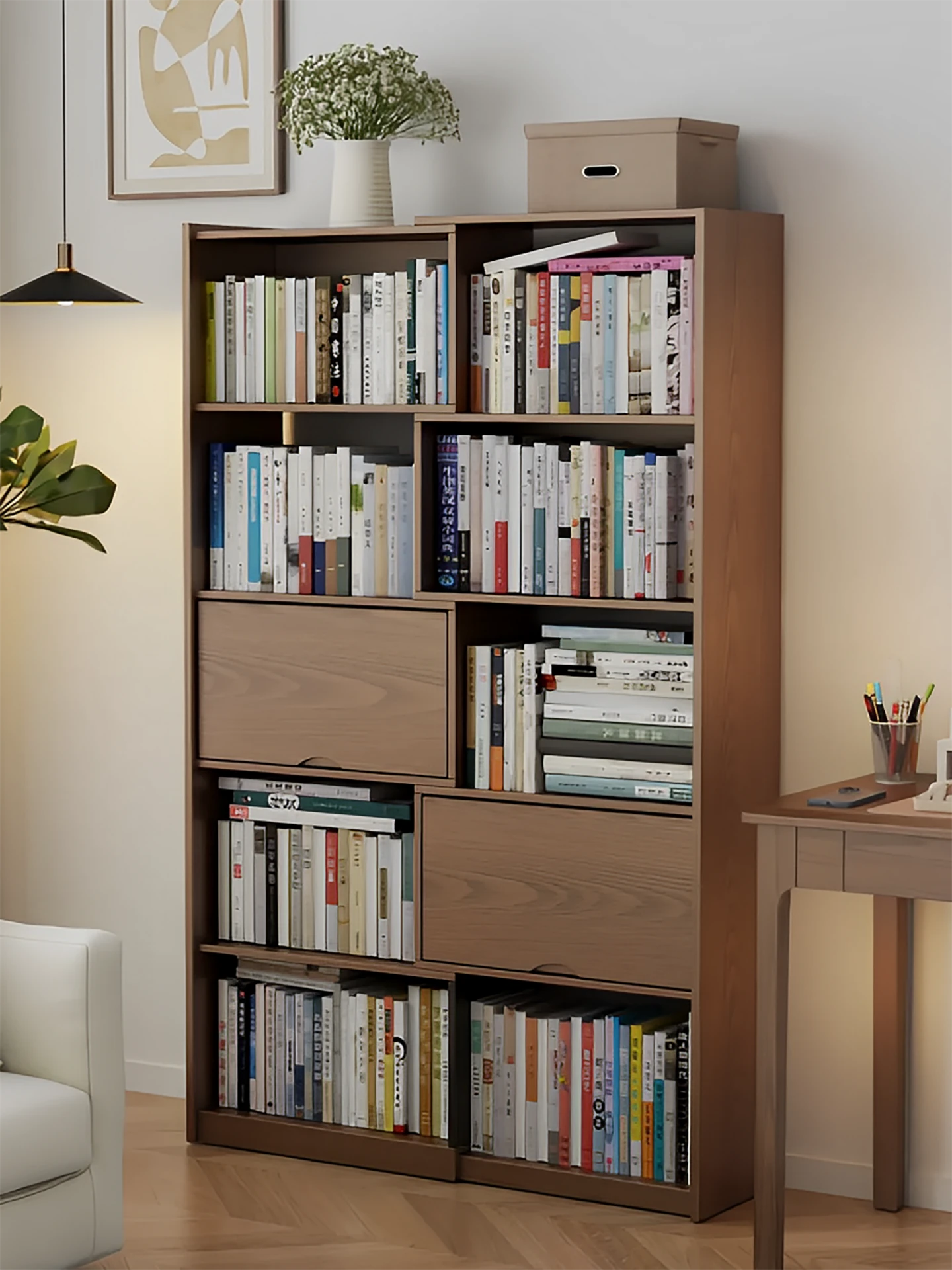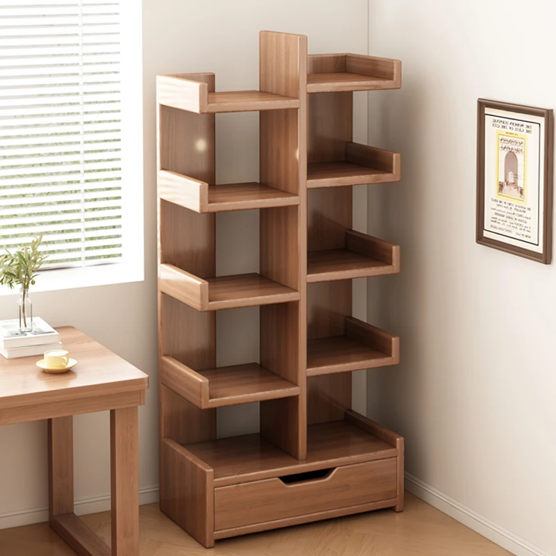 Japanese Style Wooden Bookcase - Multifunctional Wall-Mounted Storage Cabinet for Living Room, Sofa Side, and Tea Serving - Stylish & Practical Storage Solution