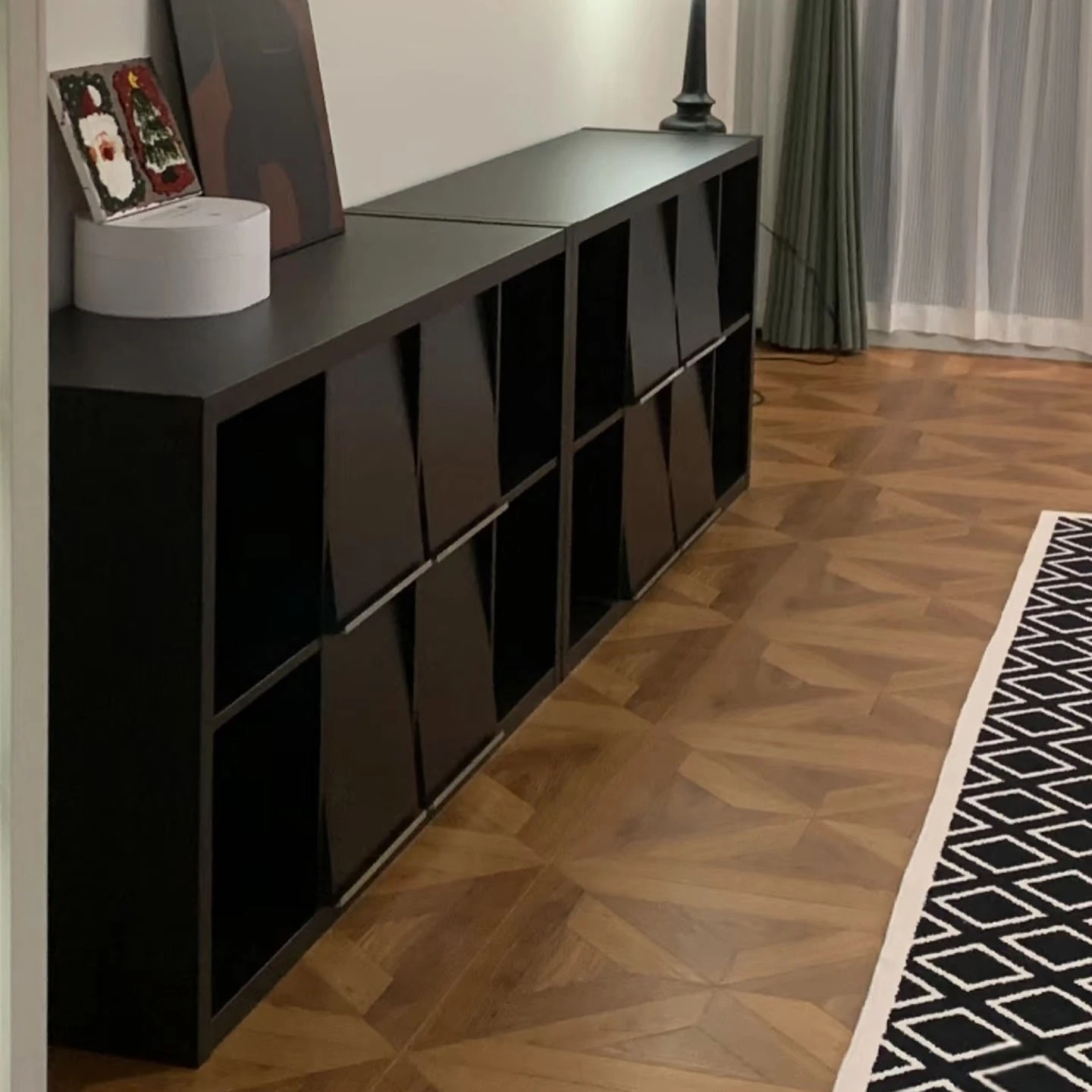 Nordic Style Versatile Storage Cabinet - Black Wall-Mounted Dresser with Grid Design for Bedroom, Perfect for Organizing and Displaying Your Essentials, Ideal as a Bedside Storage Solution.