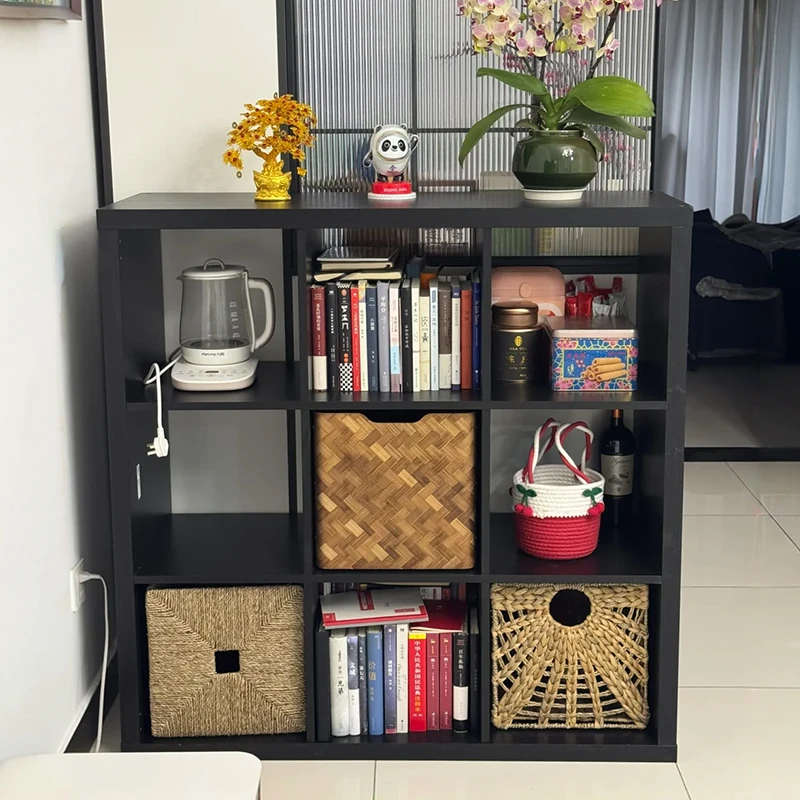 Vintage Floor Bookshelf - Stylish Storage Shelf for Living Room, Cube Organizer with Nine Compartments, Versatile Partition Side Cabinet for Efficient Space Management