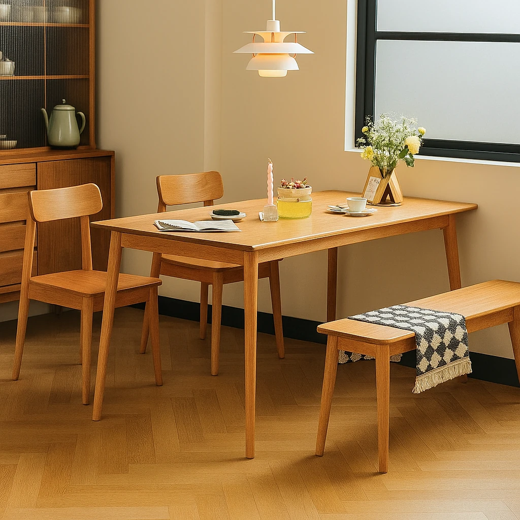 2025 New Rustic Solid Wood Dining Table - Space-Saving Rectangular Table for Small Homes, Perfect for Living Rooms, Includes Stylish Chairs