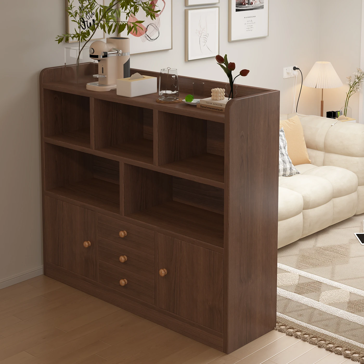 Multifunctional Wall-Mounted Bookshelf and Storage Cabinet - Vintage Style Divider for Living Room and Entryway, Ideal for Organizing and Displaying Tea and Decor Items