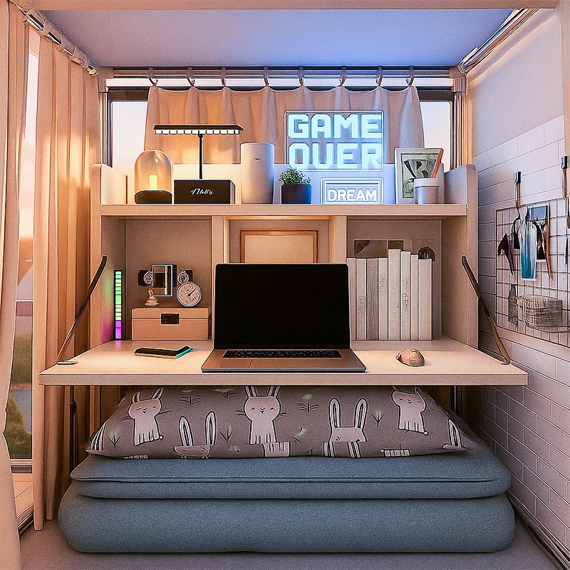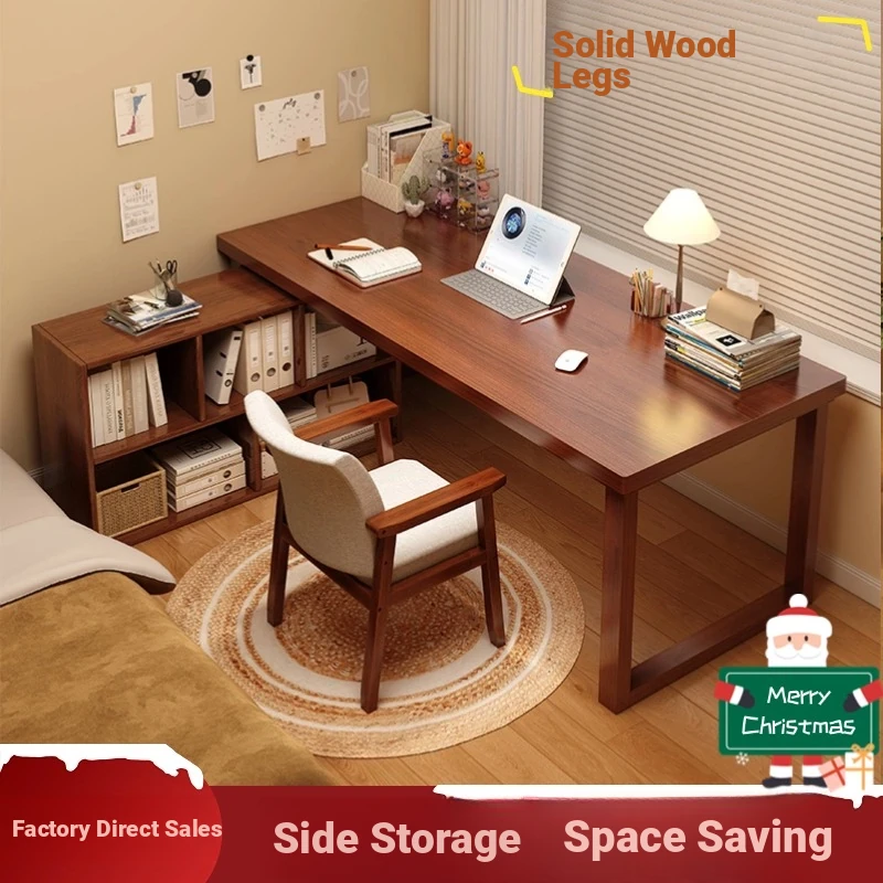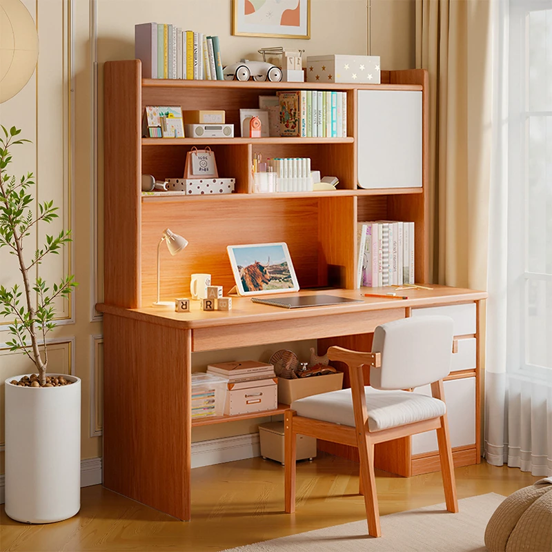 Multifunctional Study Desk with Bookshelf - Perfect for Elementary and Middle School Students, Space-Saving Design for Home Use, Simple Wooden Style, Ideal for Bedroom Wall Placement
