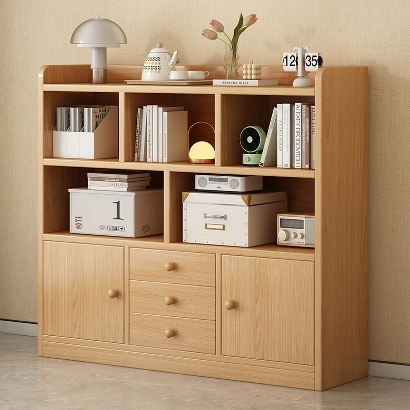 Rustic Wooden Style Japanese Bookcase - Stylish Storage Cabinet for Living Room, Sofa Side Table, Room Divider, and Nursery Low Cabinet - Perfect for Organizing and Enhancing Your Space!