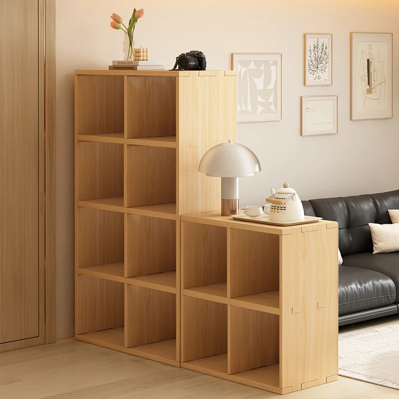 Natural Wood Color Bookshelf and Storage Rack - Stylish Wall-Mounted Living Room Cabinet with Doors, Floor-standing Bookcase and Versatile Cube Organizer for Home Use