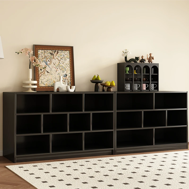 Black Bookshelf Storage Unit - Stylish Floor-standing Organizer for Living Room, Multi-functional Cabinet, TV Stand, and Bookcase Combo for Efficient Space Management and Elegant Décor