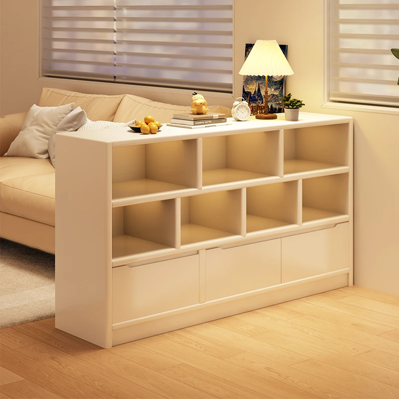 Cream Style Wall-Mounted Storage Bookshelf - Versatile Sofa Side Cabinet and Tea Stand with Grid Design for Stylish Organization and Space Saving