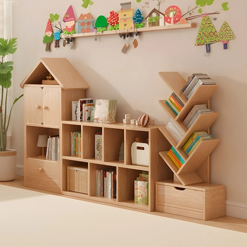 Stylish Floor-standing Bookshelf and Storage Cabinet - Versatile Wall-mounted Unit for Kindergartens and Living Rooms, Perfect for Displaying and Organizing with Chic Cubby Design
