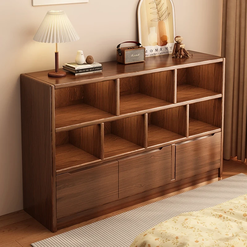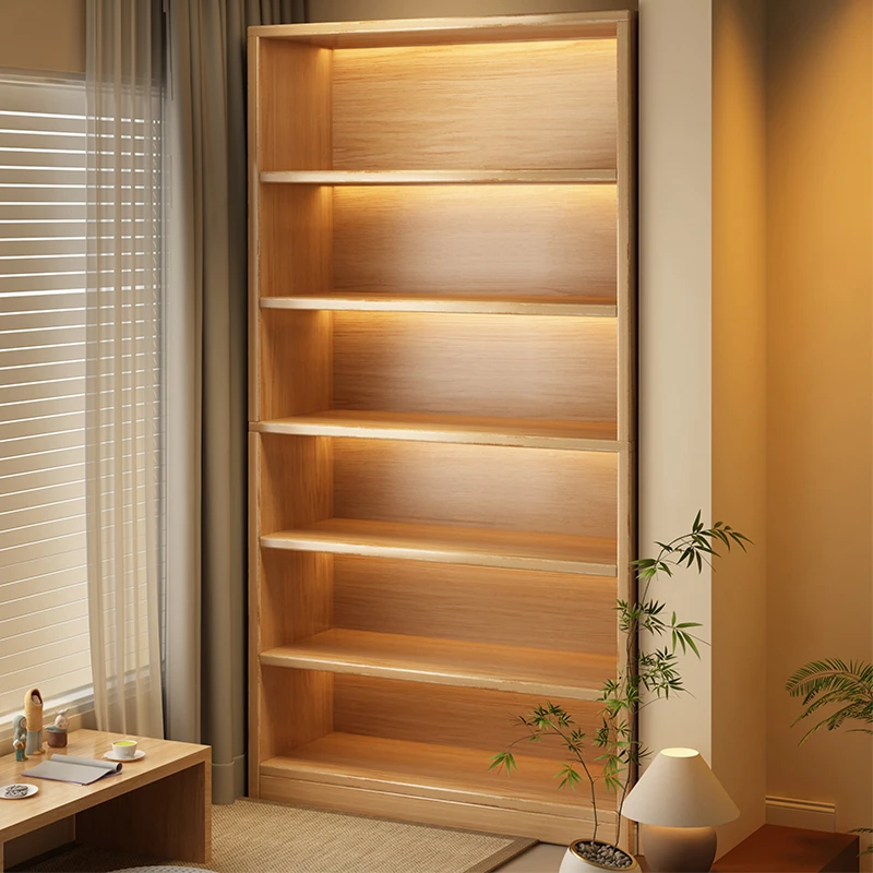 Japanese-Style Dust-Proof Bookshelf - Home Wall-Mounted Storage Cabinet, Floor-Standing Organizer, Natural Wood Combination Cabinet, Solid Wood Bookcase for Stylish Living Spaces
