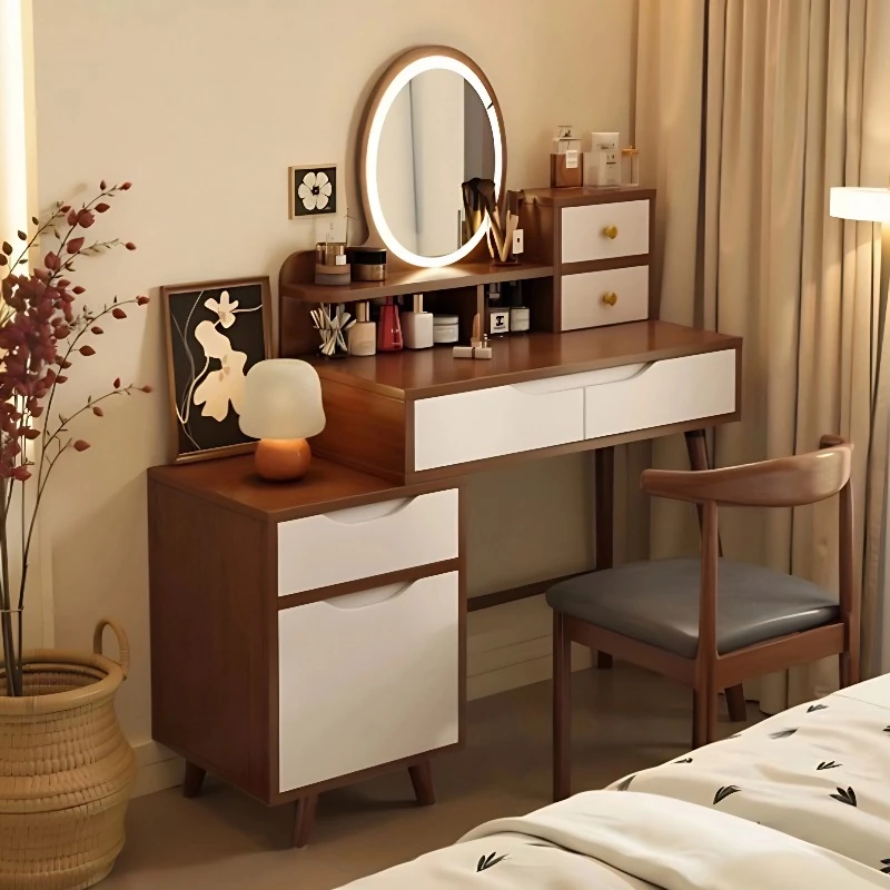 2025 New Vintage-Inspired Makeup Vanity Corner – Modern Minimalist Bedside Table & Makeup Desk Combo with Stylish Storage Solutions