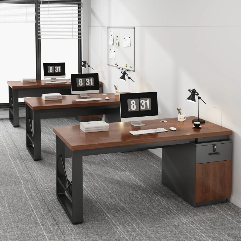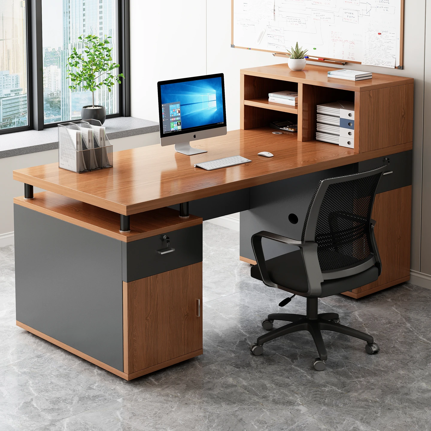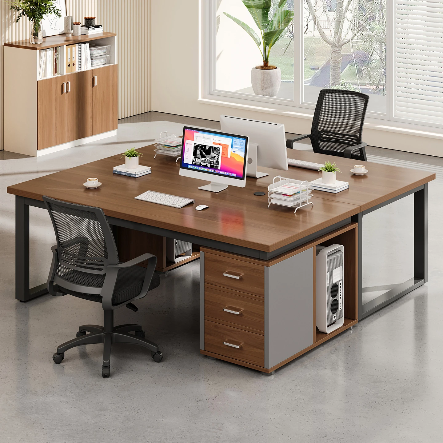 Modern Double-Sided Office Desk Set for Employees - Minimalist Workspace with Drawers for Desktop Computers, Perfect for Collaborative Workspaces