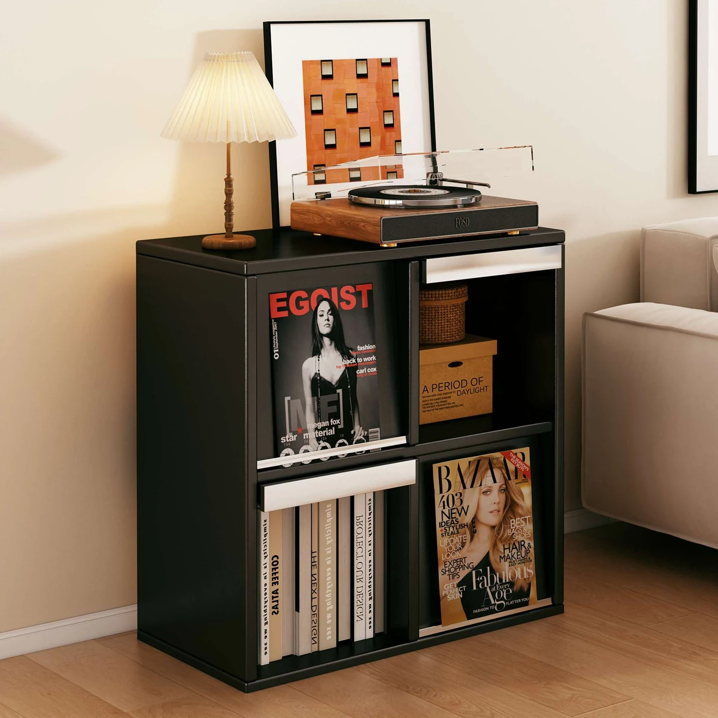 Stylish Black Bookshelf and Storage Cabinet – Vintage Design for Home Living Room, Perfect for Organizing Books and Items with Flip-Top Cubes and Open Shelves. Ideal for Modern Spaces!