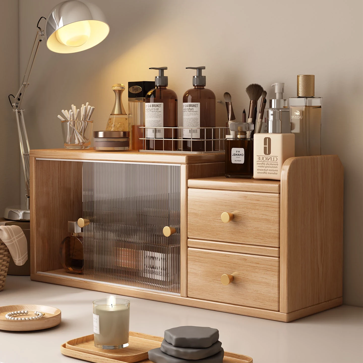 Elegant Desktop Bookshelf and Makeup Organizer - Tiered Storage Rack for Bedroom Vanity, Dustproof Storage Cabinet for Stylish and Functional Organization