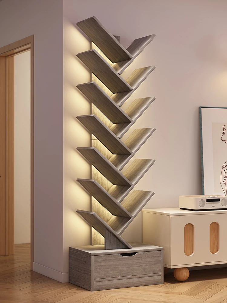 Minimalist Tree-Shaped Freestanding Bookshelf - Multi-Layer Wall-Mounted Storage Rack for Home Use, Narrow Space Organizer and Book Cabinet