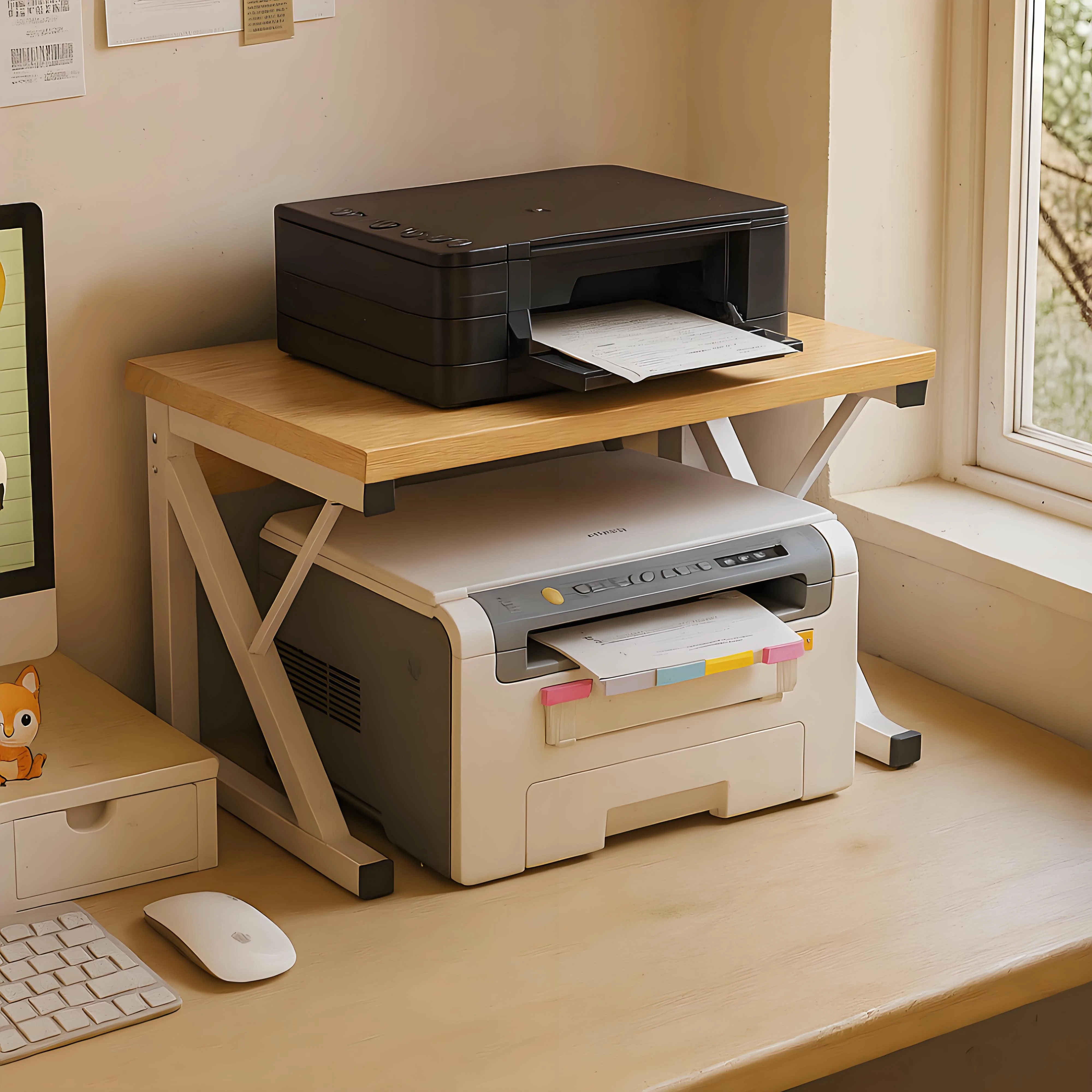 Multi-Functional Printer Stand - Double Layer Elevated Storage Rack for Home & Office Desks, Organize Your Workspace Efficiently!