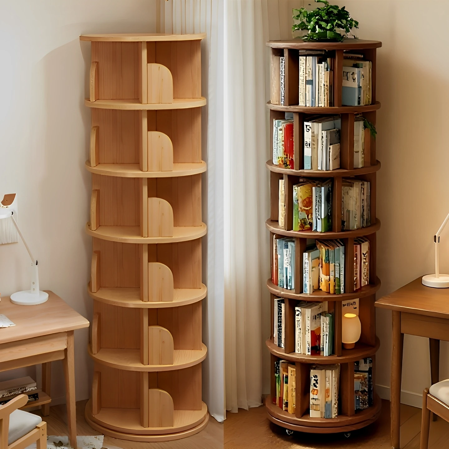 360-Degree Rotating Solid Wood Bookshelf - Stylish Floor Storage Rack, Wall-Mounted, Mobile Corner Narrow Cabinet for Optimal Space Utilization