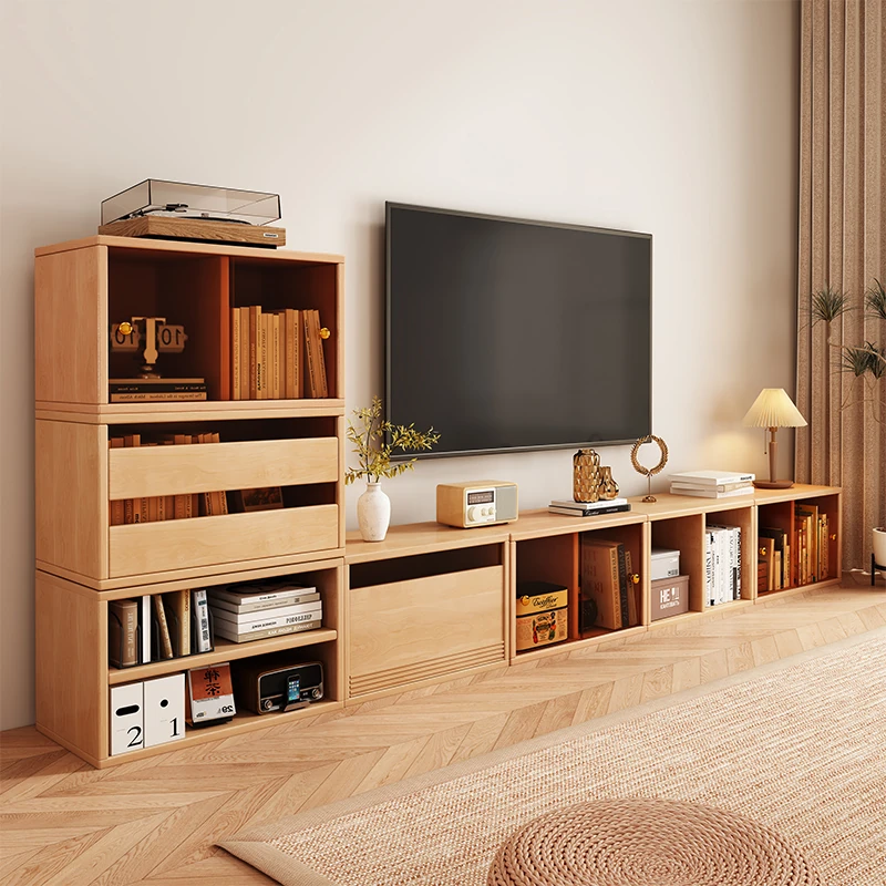 2025年新作!自然木風のリビングテレビキャビネット - 家庭用モジュラー収納、自由に組み合わせ可能なスタイリッシュなフロアタイプ!あなたのリビングを美しく整え、収納力も抜群!