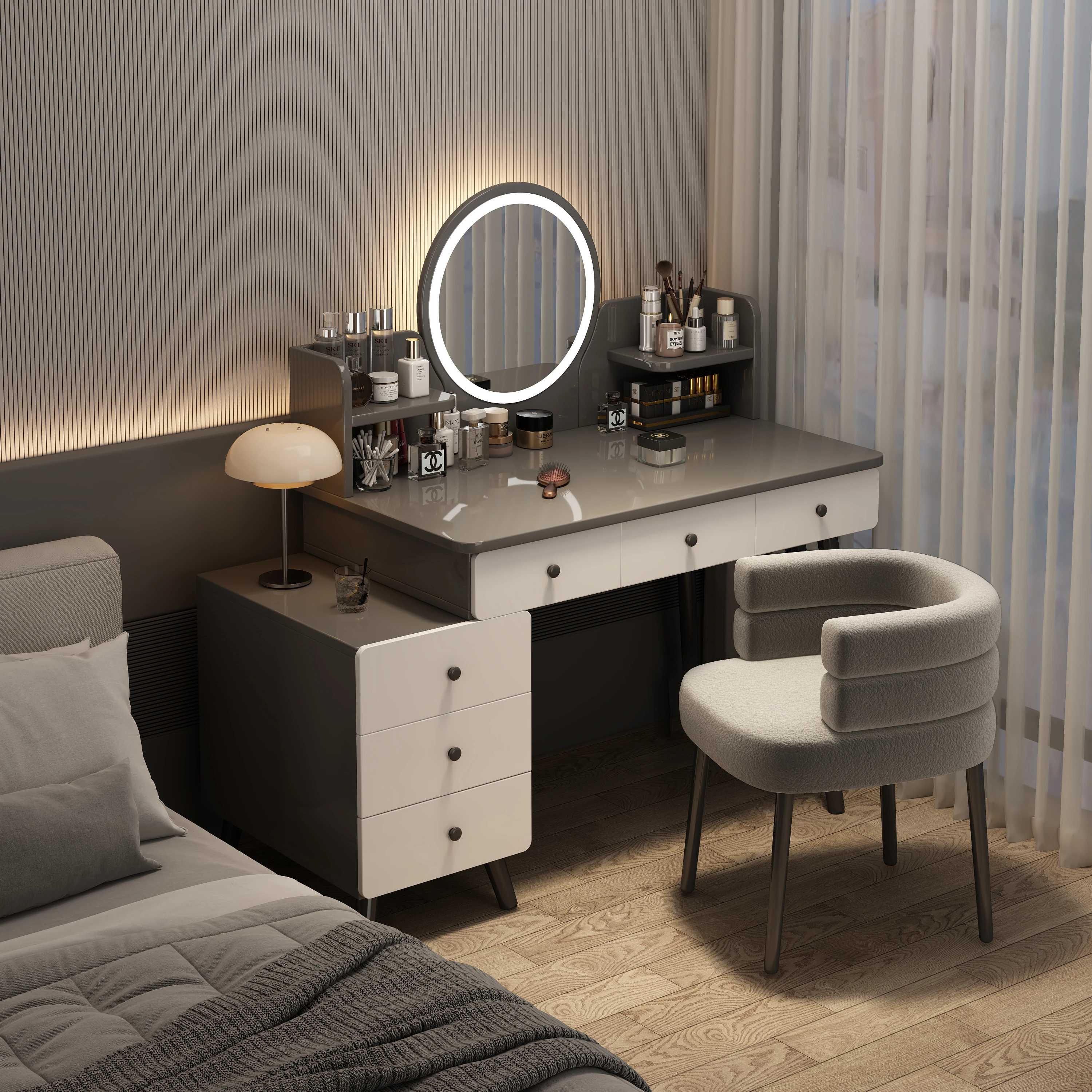 2025年新作!シンプルでモダンな化粧台、洗練された高級感のある収納キャビネット一体型デスク。あなたの寝室をスタイリッシュに演出する、機能性とデザインを兼ね備えたアイテムです!