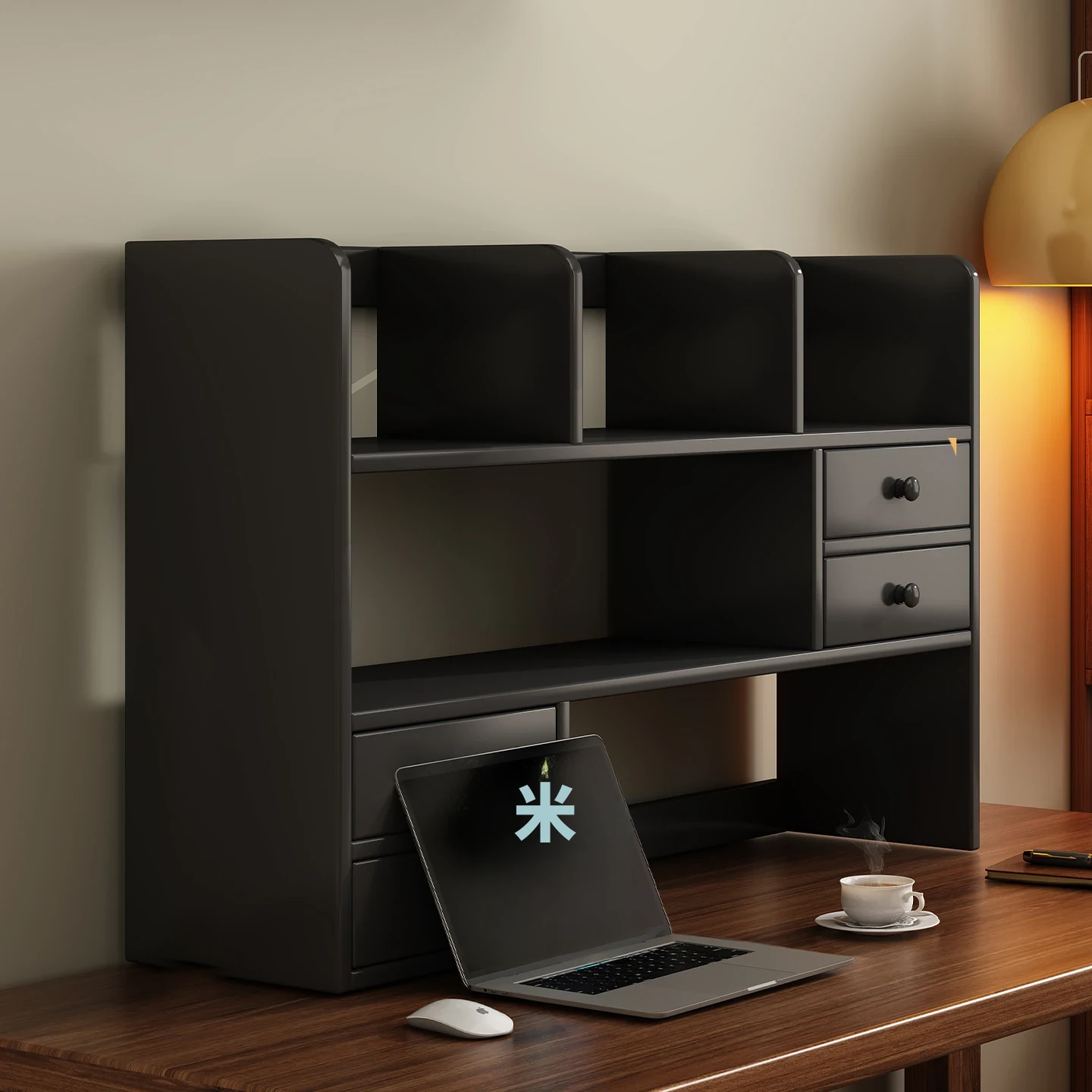 デスク上の多層収納!シンプルでスタイリッシュなデスク用書棚 - 家庭やオフィスに最適な整理整頓アイテム。机上をスッキリさせて、作業効率アップ!