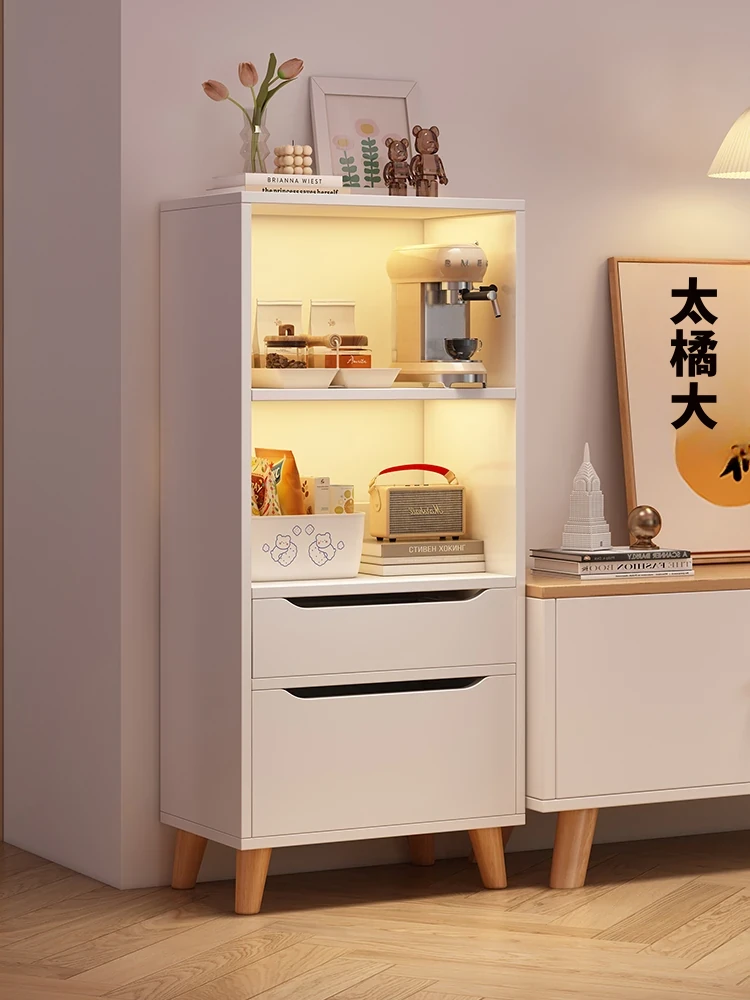 壁に寄せて置ける書棚兼収納キャビネット - ソファサイドにぴったりなリビング用スリムキャビネット、収納力抜群の多層デザインでベッドサイドにも最適!